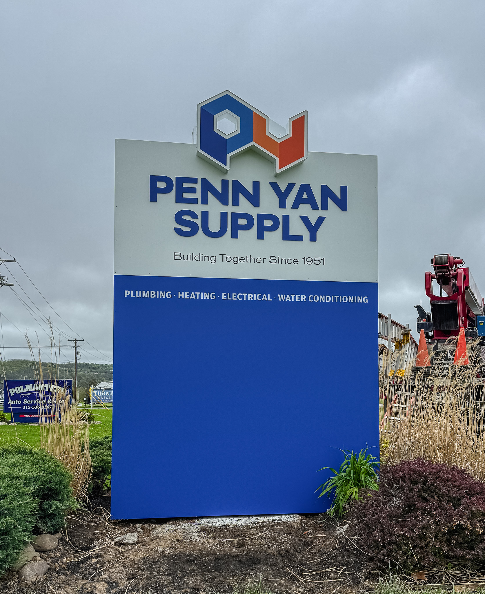 Storefront revitalization including new channel letters, and awning with timber framed knee braces, two monument signs with push-thru copy and stone bases, wayfinding signs and other illuminated wall signs rounding out a full featured sign and branding package.